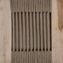 Teak wood in reclaimed aged finishing. Outdoor rope in a linear pattern.